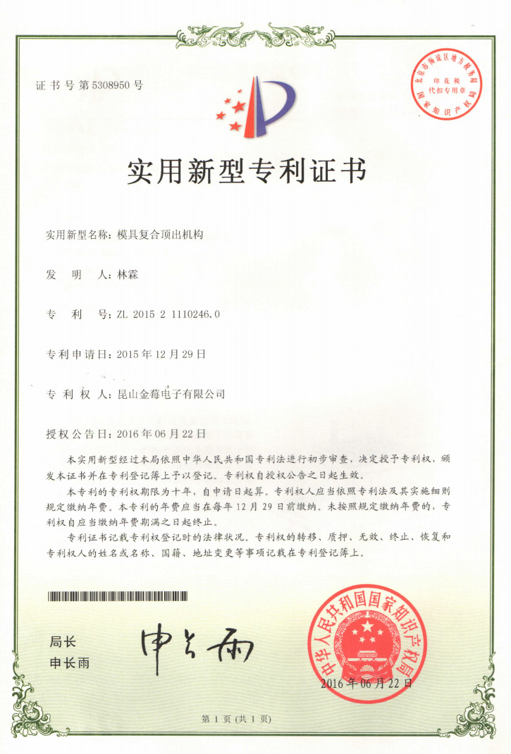 5308950專利號-模具復合頂出機構(gòu)