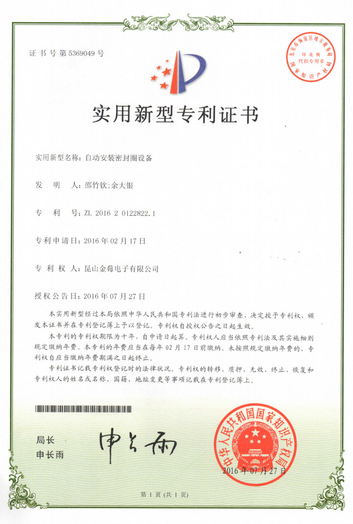 5369049專利號-自動安裝密封圈設備